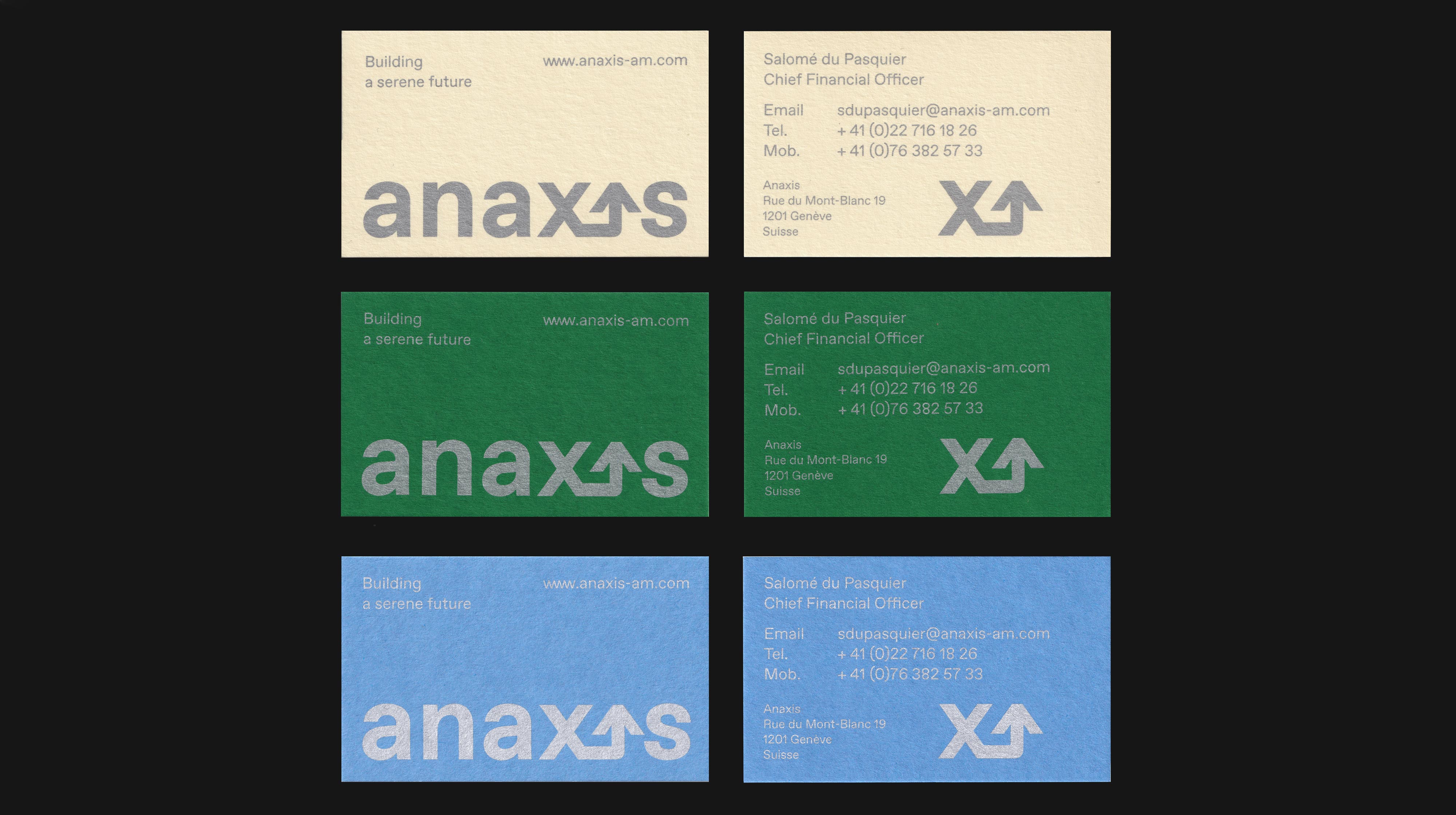 Presque deux ans de recherches et de travail de fond pour redéfinir la nouvelle identité d’Anaxis, avec des formes à la fois sensibles et pertinentes. Cette réflexion a motivé la création d’un nouveau logotype, d’une nouvelle signature identitaire, et à la redéfinition de la personnalité iconographique de la société de gestion financière, déclinés sur la papeterie et la brochure commerciale.